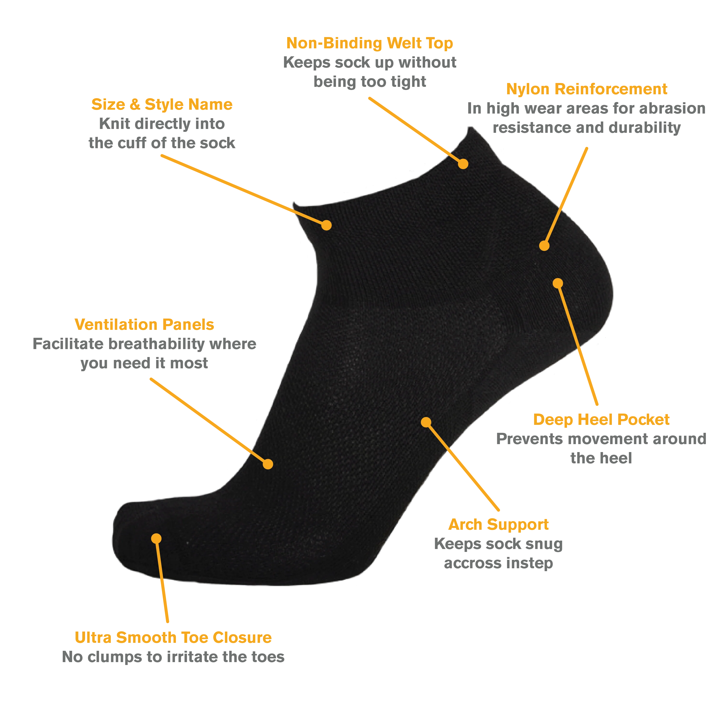 Get your second wind in these performance extra light cushion mini crew socks (with a 3 12/" cuff). Featuring Sport Support technology with whole-foot support that hugs the foot without being constrictive and enhanced mesh zones that improve breathability.